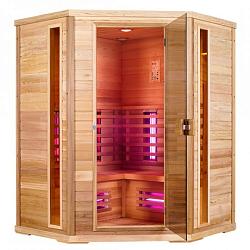 Инфракрасные сауны выполняются из цуги, древесины североамериканского хвойного дерева, имеющей приятный аромат и светлый цвет, схожие с сосной.