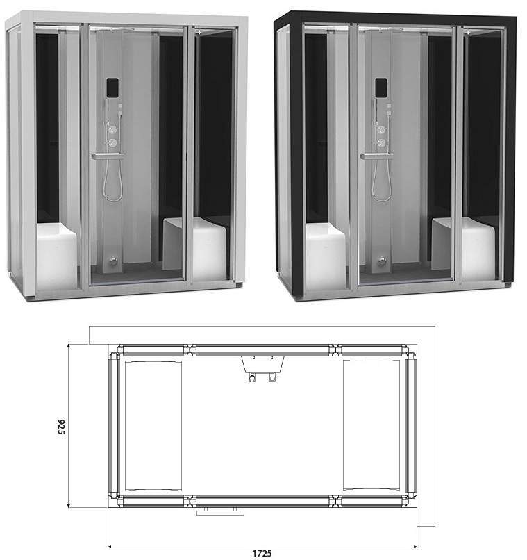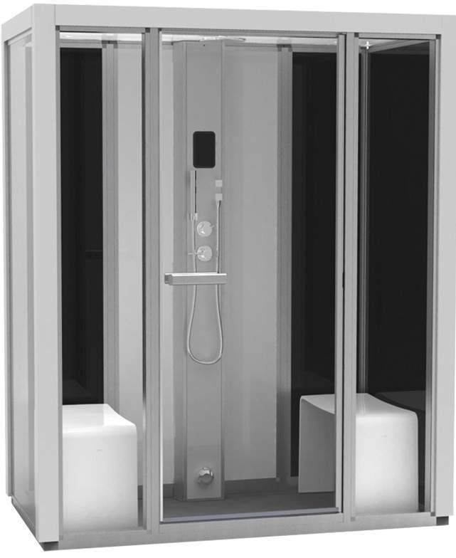 Дизайн и отделка кабин продуманы до мелочей, в конструкции отсутствуют выступы и углы, благодаря чему грязь не скапливается и чистка кабин не занимает много времени. Сиденья в пародушевых выполнены из прессованного материала, отличаются привлекательной формой, практичностью и удобством. Двери и элементы стенок могут быть установлены в зеркальном отражении, в зависимости от требований вашей планировки. Управление нагревателем осуществляется с панели управления на колонке душевого модуля.
